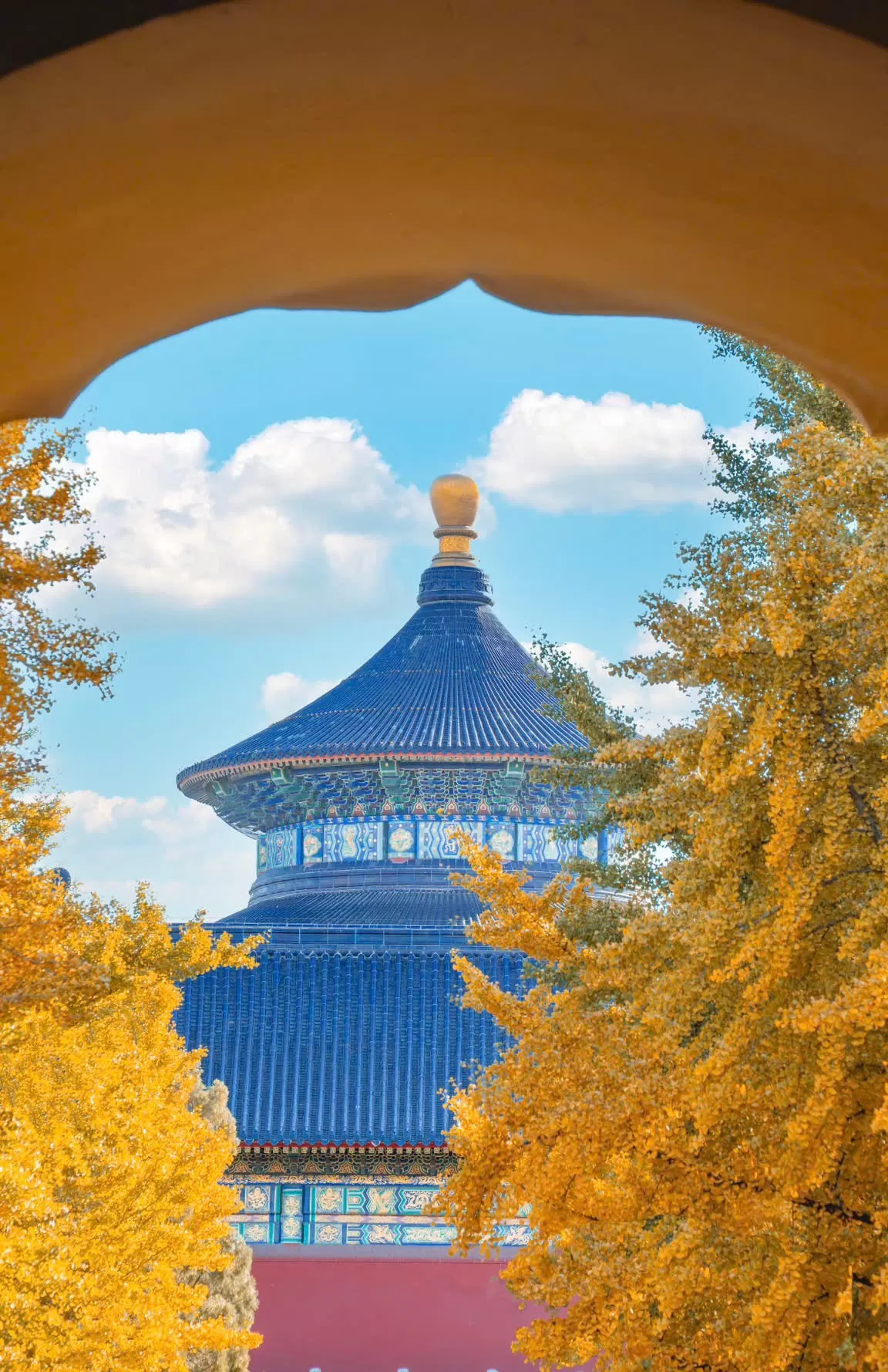 " Mùa thu ở Bắc Kinh nhất định phải đến, vì mùa thu ở Bắc Kinh chính là thiên đường ", những đình làng ven sông, hành lang dài, tháp canh, tường đỏ và ngói tráng men, kiến trúc cổ kính hòa quyện cùng lá bạch quả vàng ươm đẹp đến ngỡ ngàng.